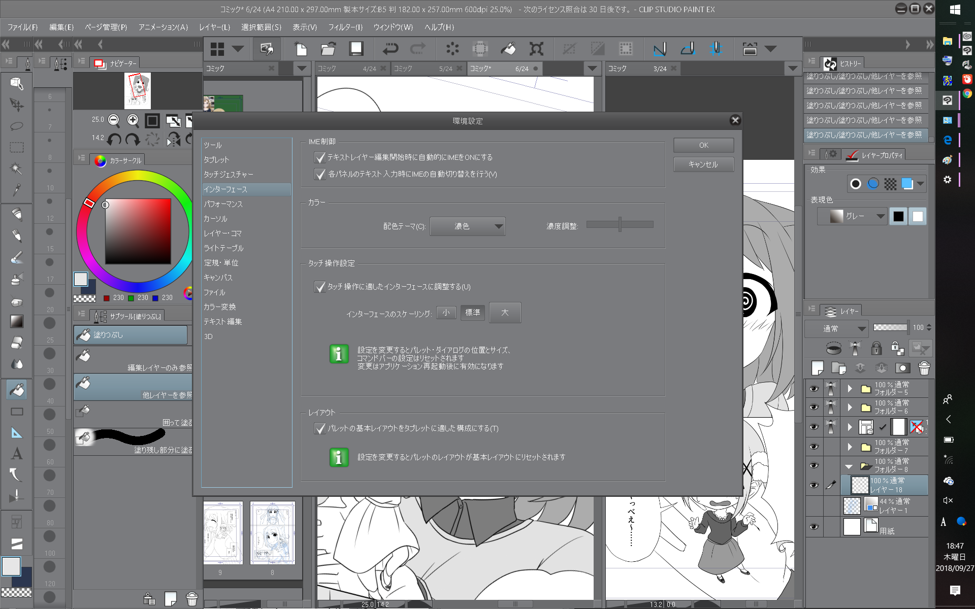 >・CLIP STUDIO PAINTを起動し、[ファイル]メニュー→[環境設定]を選択して、