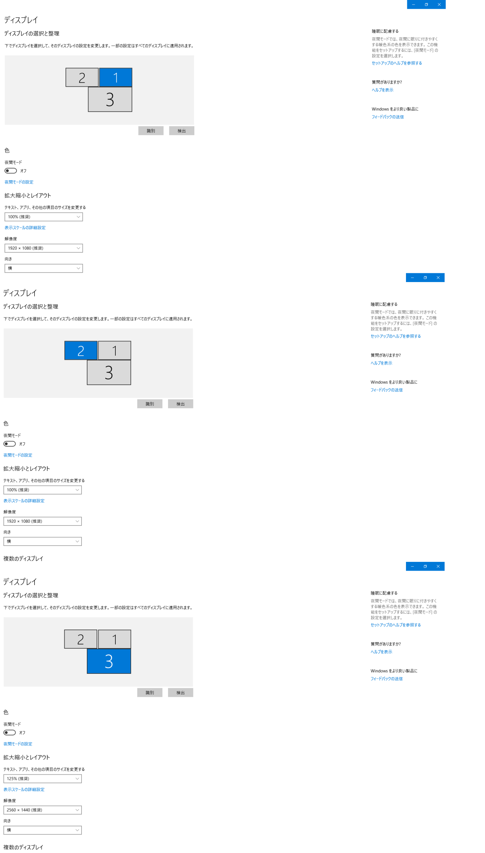 選択していただき、ディプレイ選択で[1][2][3]が表示されているか