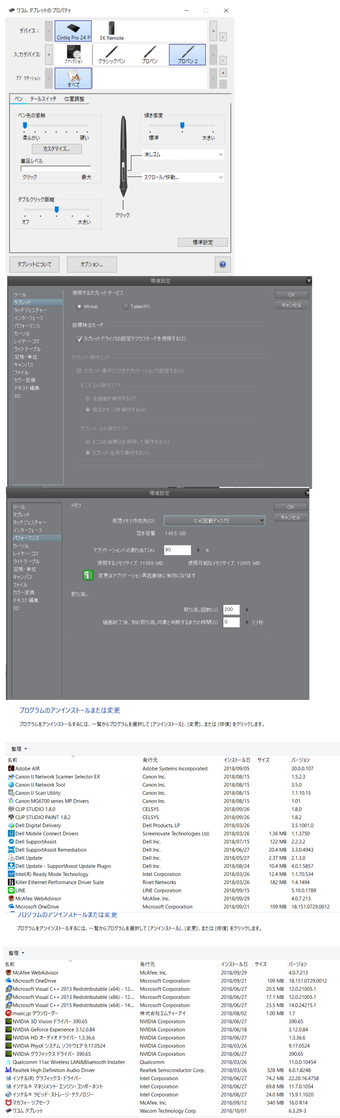 液晶タブレットドライバをインストールした手順を、覚えている範囲で