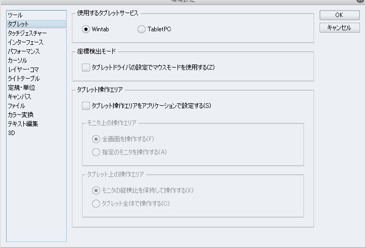 ・CLIP STUDIO PAINTを起動し、[ファイル]メニュー→[環境設定]を開き、