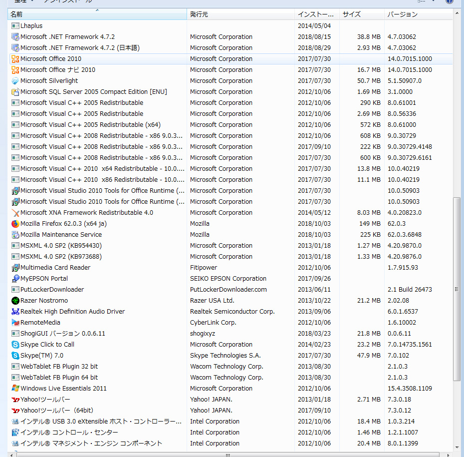 ※インストール日やバージョン等の項目が確認できる状態で撮影して