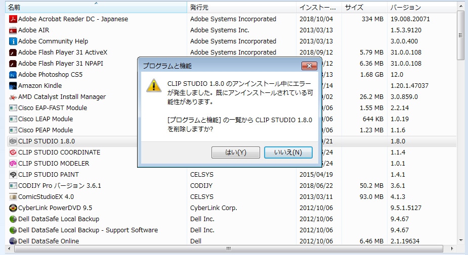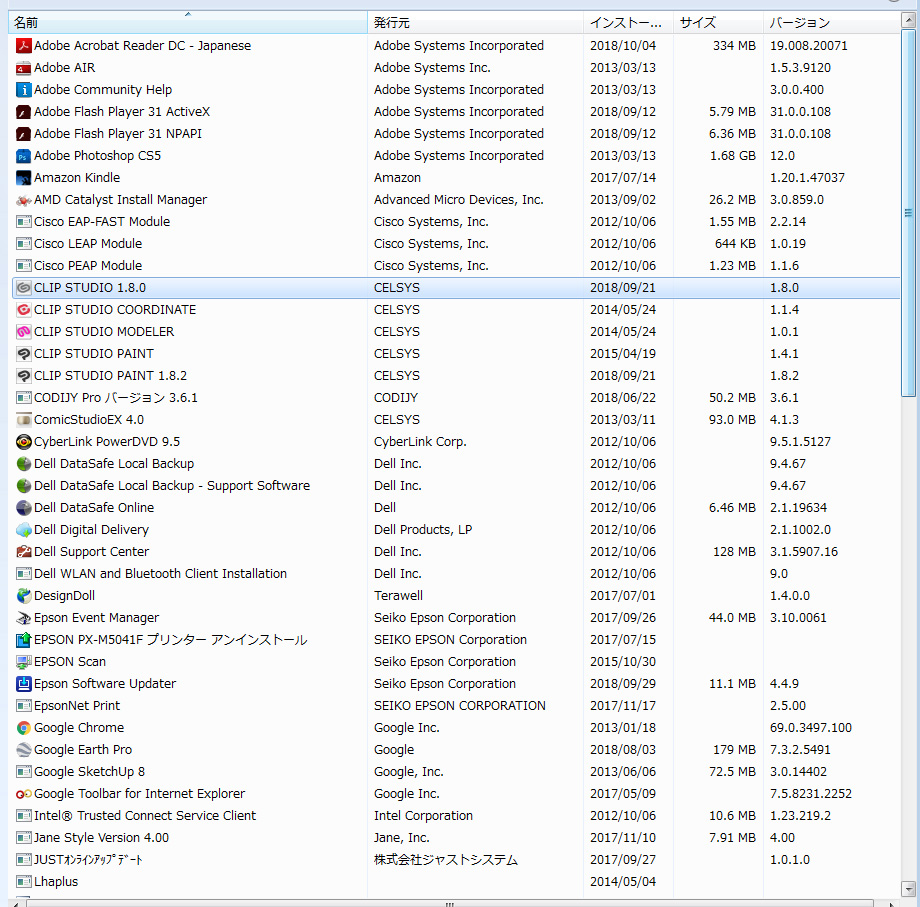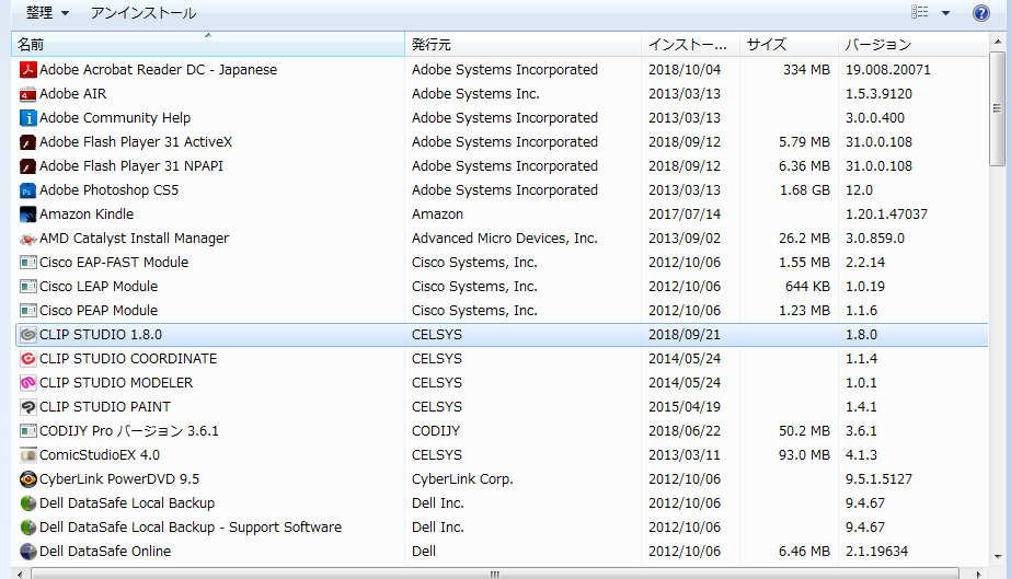 ・[コントロールパネル]→[プログラムと機能]を選択いただき、標示される