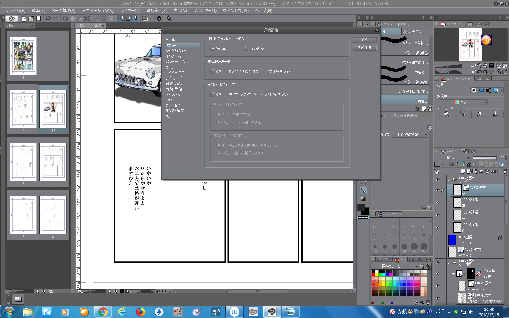 *[ファイル]メニュー→[環境設定]→[タブレット]を選択いただき、表示