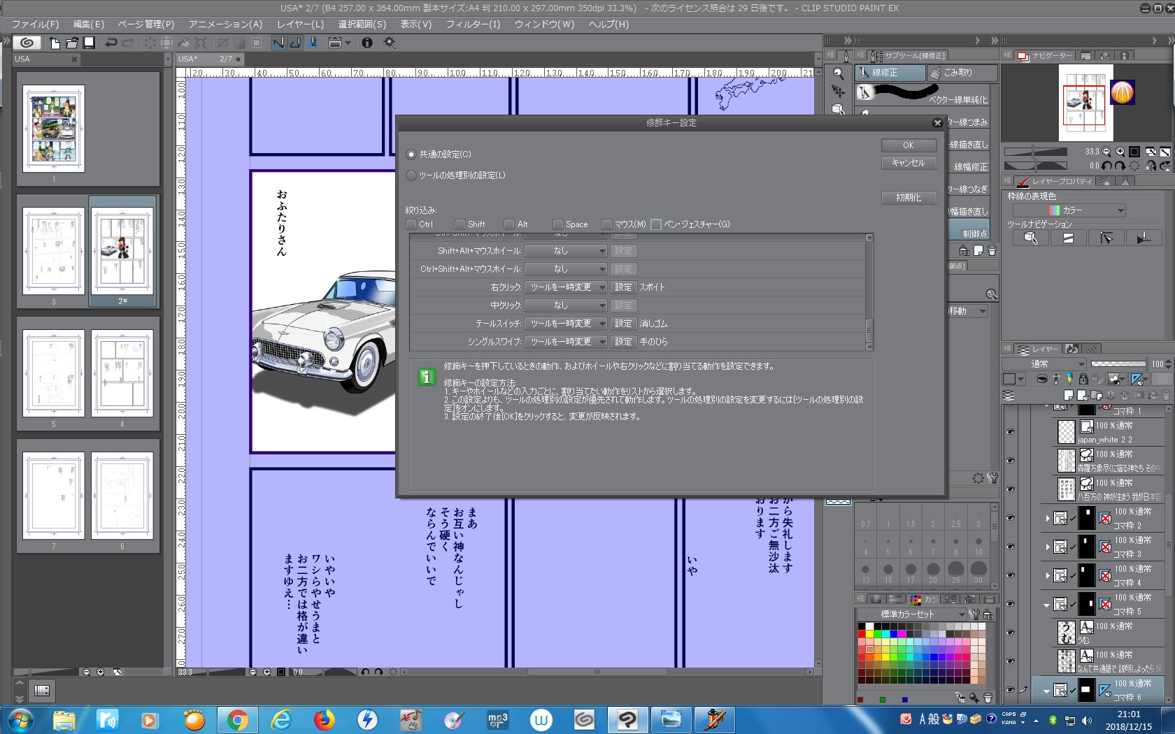 突然、ペンのサイドボタンに初期設定されていた手のひらツールが使えなくなりました。ワコムのタブレットのドライバは6.3.31-4、CLIP STUDIO PAINT EX(64ビット) で、バージョンは1.8.2です。 今まで普通に使えていたのに、いきなりです。なお、右ボタンの「スポイト」は起動しますし、試しに他の操作をボタンに割り当てても普通に動きますが、CLIP STUDIOでの操作のみできません。 試しに、ペンタブのドライバを削除して再インストールしてみたり、クリスタをアンインストール、インストールしなおしても改善されません。 とりあえず、スペースキーでしのいでいますが、今までのペンでの操作に慣れているためどうにもしっくりこないのです。 対処方法を教えてください。 ------------------------------------------------------------ ■バージョン: ※Windowsは、[ヘルプ]メニュー → [バージョン情報]で確認できます。 ※MacOSXは、[CLIP STUDIO PAINT]メニュー → [バージョン情報]で確認できます。 ※iPadは、[CLIP STUDIO PAINT]アイコン → [バージョン情報]で確認できます。 ■グレード DEBUT( ) PRO( ) EX( ○ ) ■OS Windows 7 ( ○ ) Windows 8( ) Windows 8.1( ) Windows 10( ) MacOS X 10.10( ) MacOS X 10.11( ) macOS 10.12( ) macOS 10.13( ) macOS 10.14( ) iOS 11( ) iOS 12( ) その他( ) ------------------------------------------------------------ |