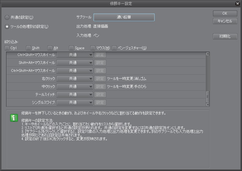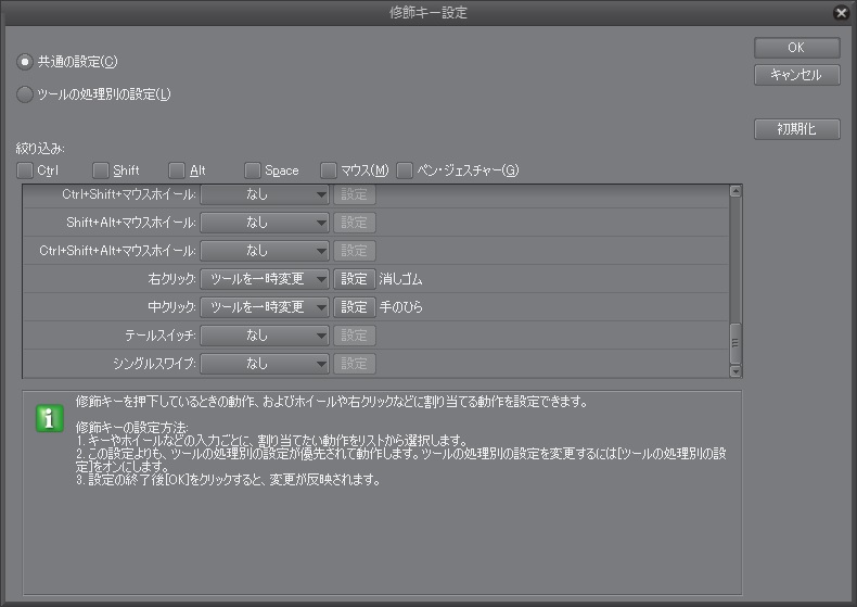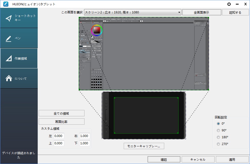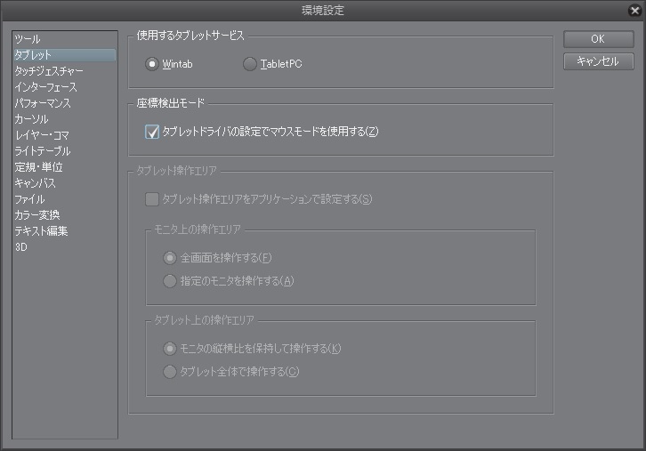 ・ペンタブレットの取扱説明書をご確認の上、ペンタブレット側の設定