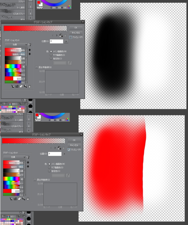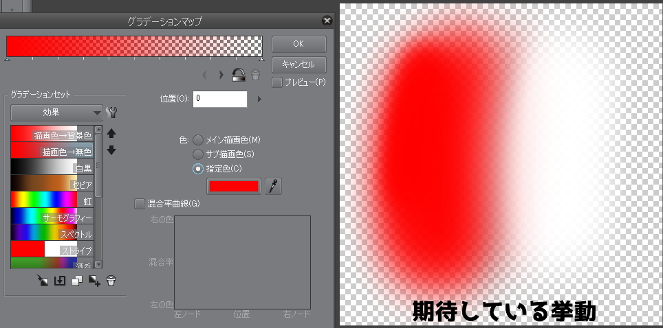 グラデーションマップの「描画色→無色」における予期しない挙動について |