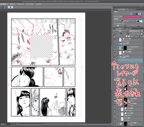 画面に透明色の四角形が表示されてそれが拡大縮小によって表示されたり消えたりします。 パソコンと同期してあるIpadoro版のデータでも同じ症状が出ます。 書き出し(EPUB、3D製本)をすると、この部分が白ぬけしてしまいます。 ひとつ前のバージョンでの症状はTwitterに動画をアップロードしているので ご参考になれば幸いです。 そしてこちらのケースの症状に似ており保存をしようとしたらバグを起こします。 ただ、上記の動画はひとつ前のバージョンのもので今日アップデートをしたら 症状が変わりました。 拡大縮小にかかわらず透明の四角形が表示され、縮小をすると透明部分がかなり大きくなります。 レイヤー表示もバグを起こしており、さらにレイヤーを全て非表示にしても、 表示される部分があります。 ひょっとしてバグの可能性がある場合は安易にアップデートしないほうがよろしかったでしょうか 申し訳ありません。 回答をよろしくお願いいたします。 ![]() ![]() ![]() ------------------------------------------------------------ ■バージョン:Windows 1.8.4 :ipad 1.8.4 ※Windowsは、[ヘルプ]メニュー → [バージョン情報]で確認できます。 ※MacOSXは、[CLIP STUDIO PAINT]メニュー → [バージョン情報]で確認できます。 ※iPadは、[CLIP STUDIO PAINT]アイコン → [バージョン情報]で確認できます。 ■グレード DEBUT( ) PRO( ) EX( 〇 ) ■OS Windows 7 ( ) Windows 8( ) Windows 8.1( ) Windows 10( 〇 ) MacOS X 10.10( ) MacOS X 10.11( ) macOS 10.12( ) macOS 10.13( ) macOS 10.14( ) iOS 11( ) iOS 12( 〇 ) その他( ) ------------------------------------------------------------ |