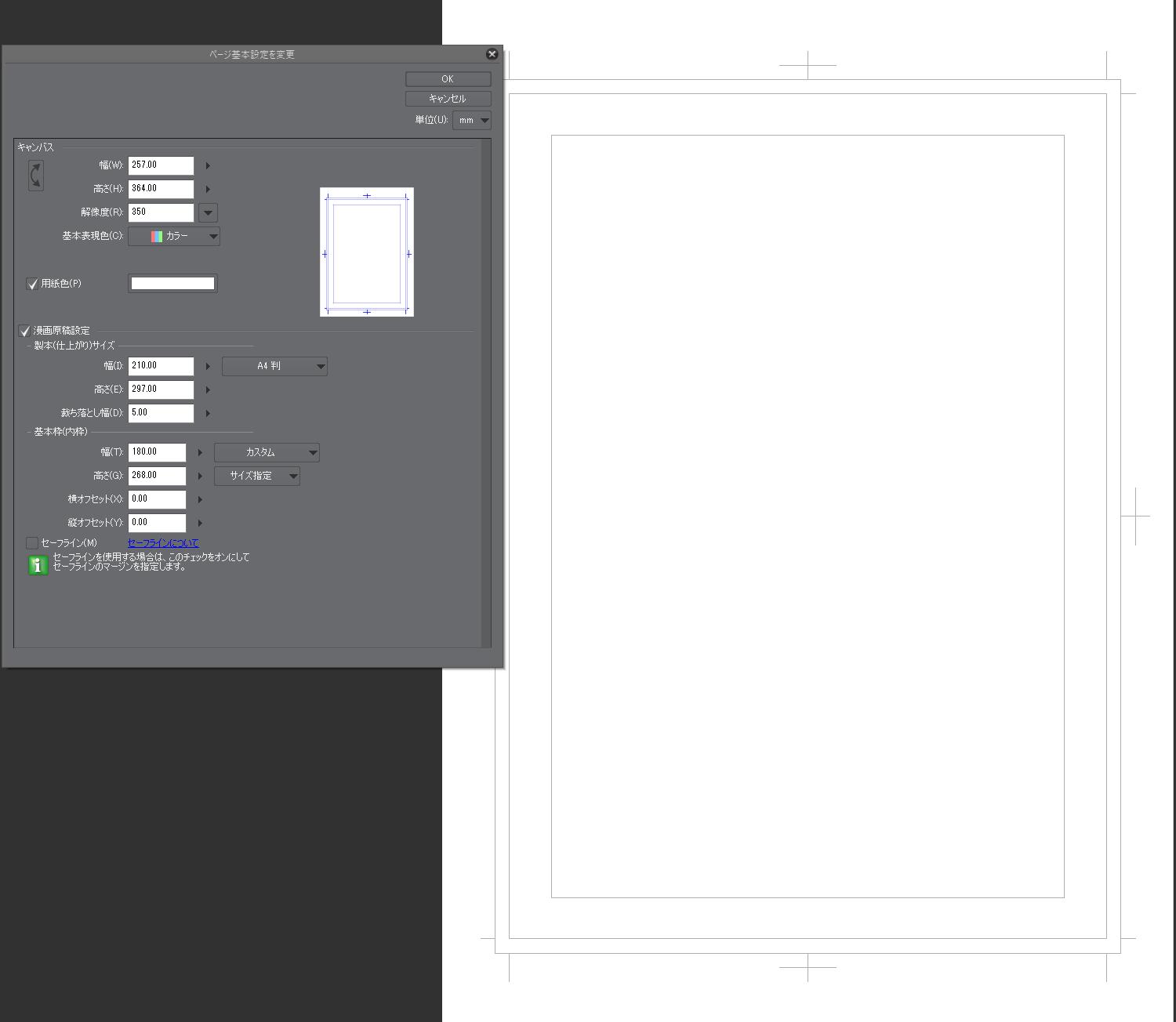 して頂き、セーフラインのチェックは外した状態で作成頂いた後に、
