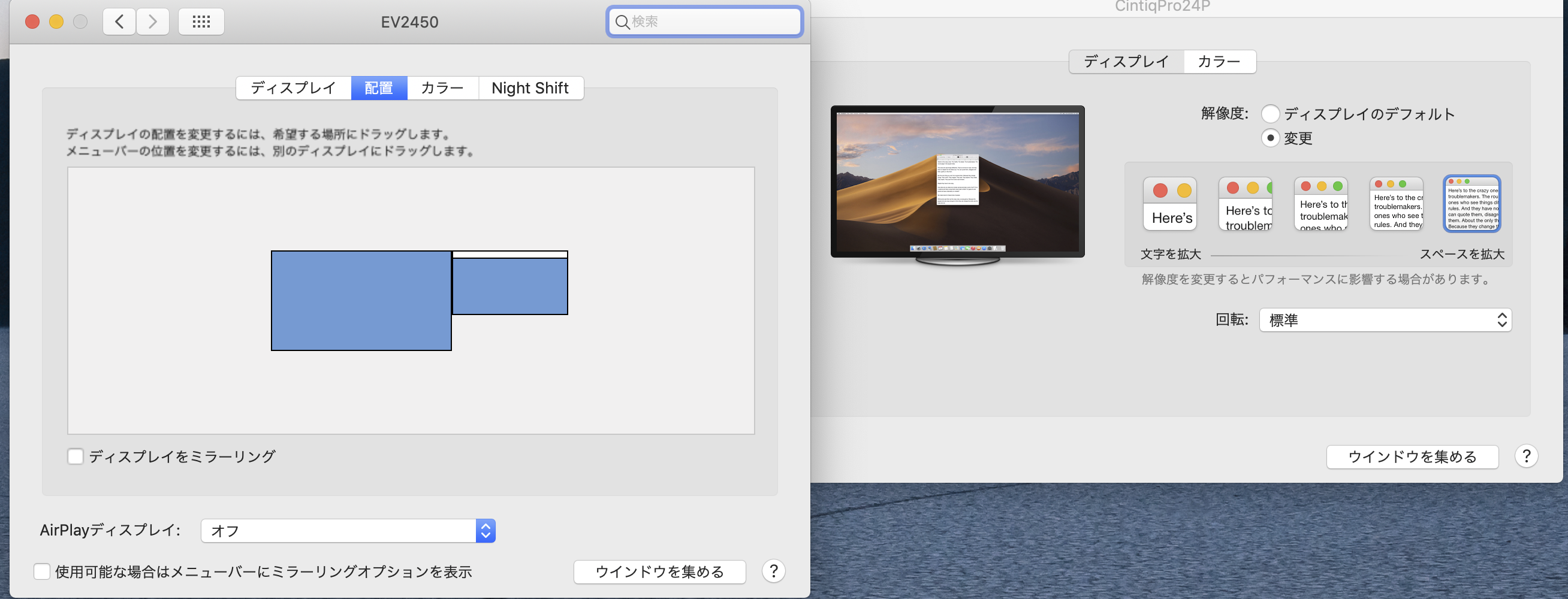 表示される画面の[ディスプレイ]を選択し、ディスプレイごとに表示される、