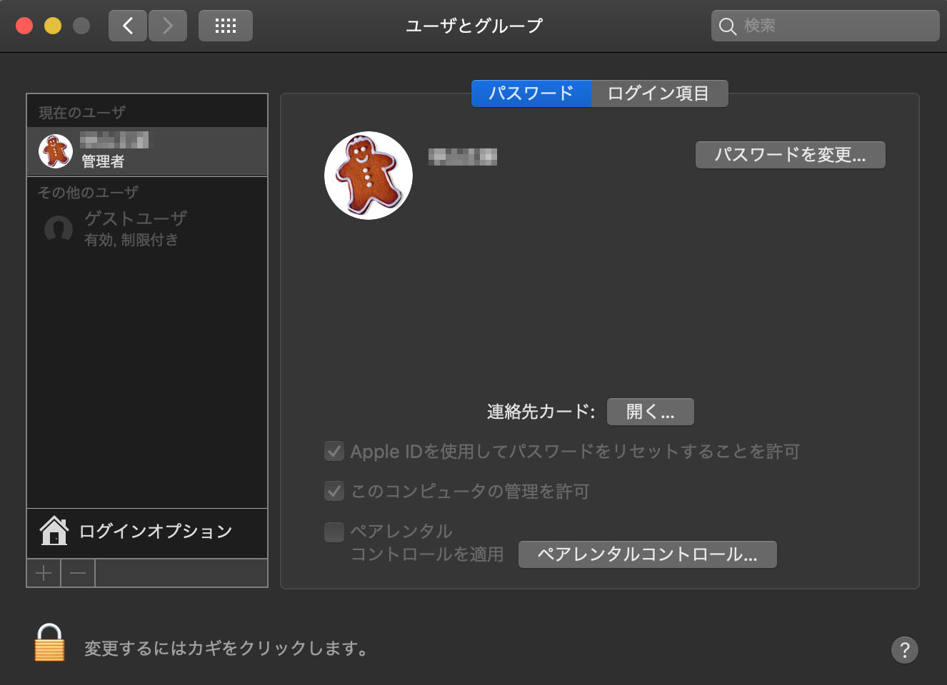 ・[変更するにはカギをクリックします。]と表示されている左隣にある、