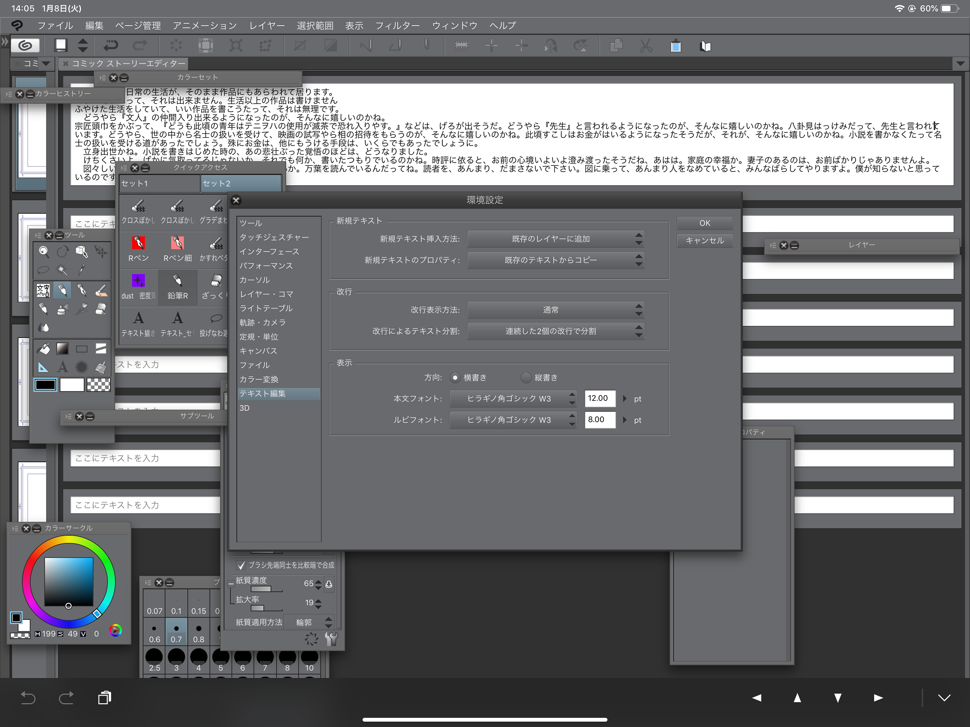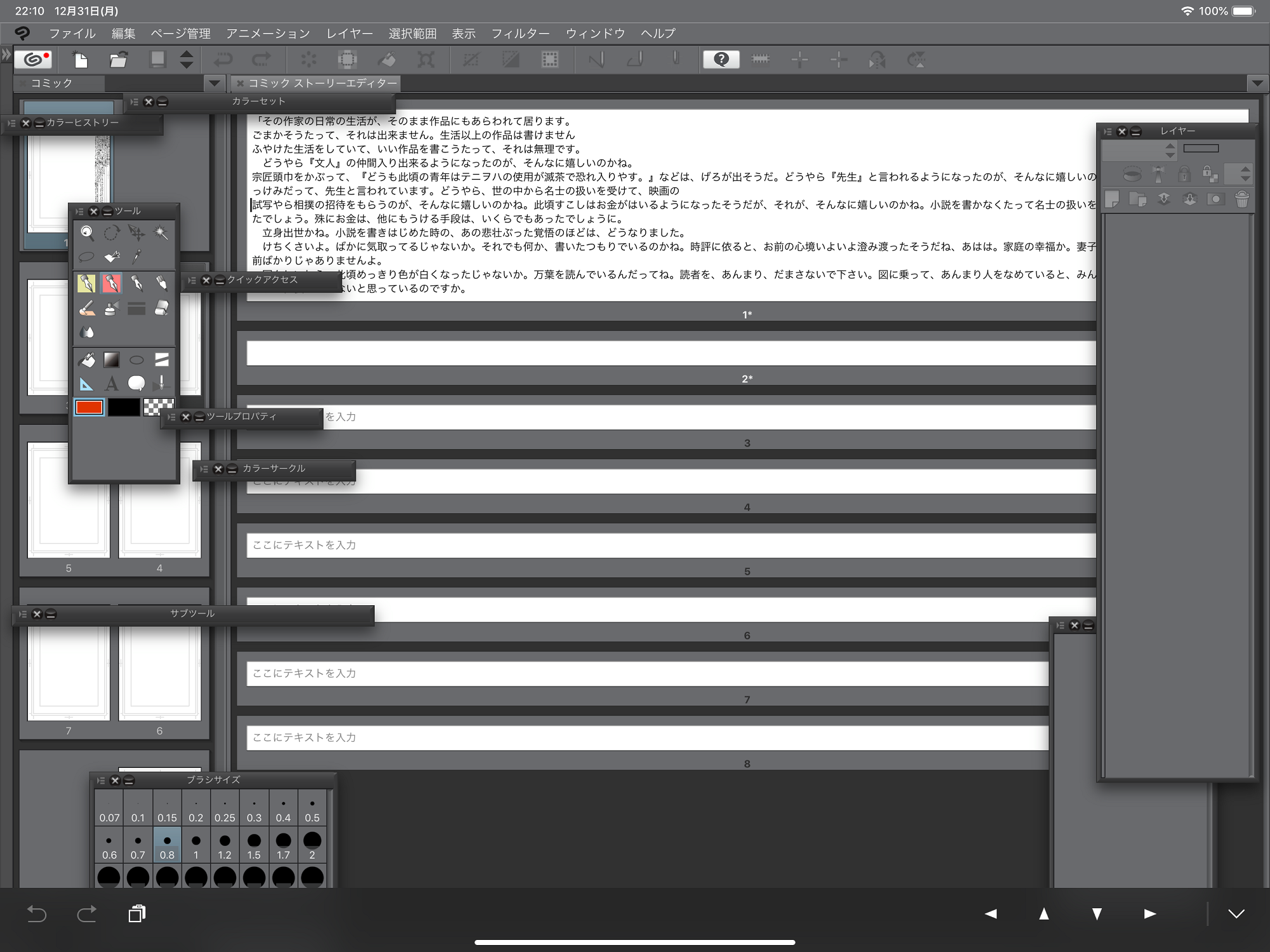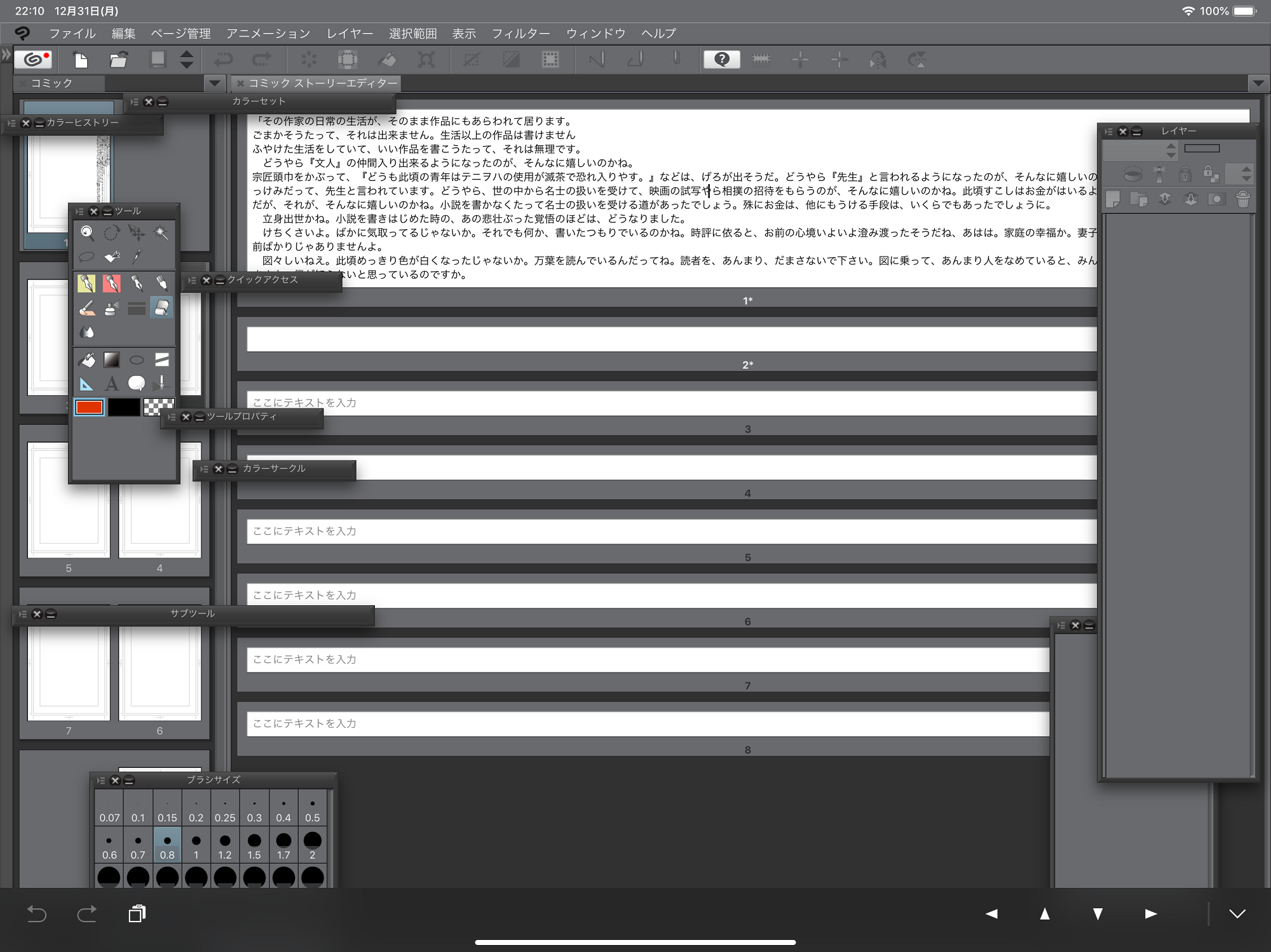 改行前(6行目中央「映画の試写やら」あたりにカーソルがあります。)