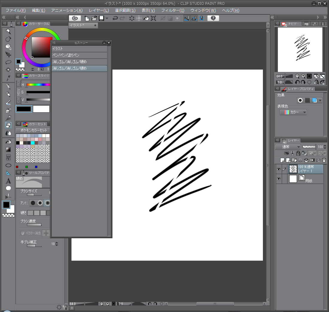 で適当に描画を行った後、ペンのスイッチで消しゴムを使用して
