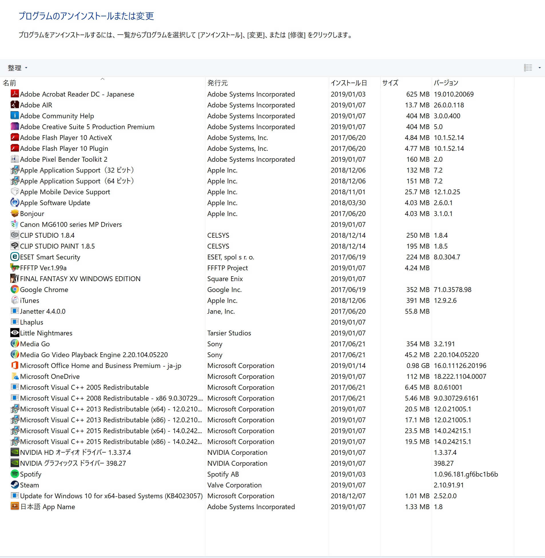 インストール日:2019/01/07