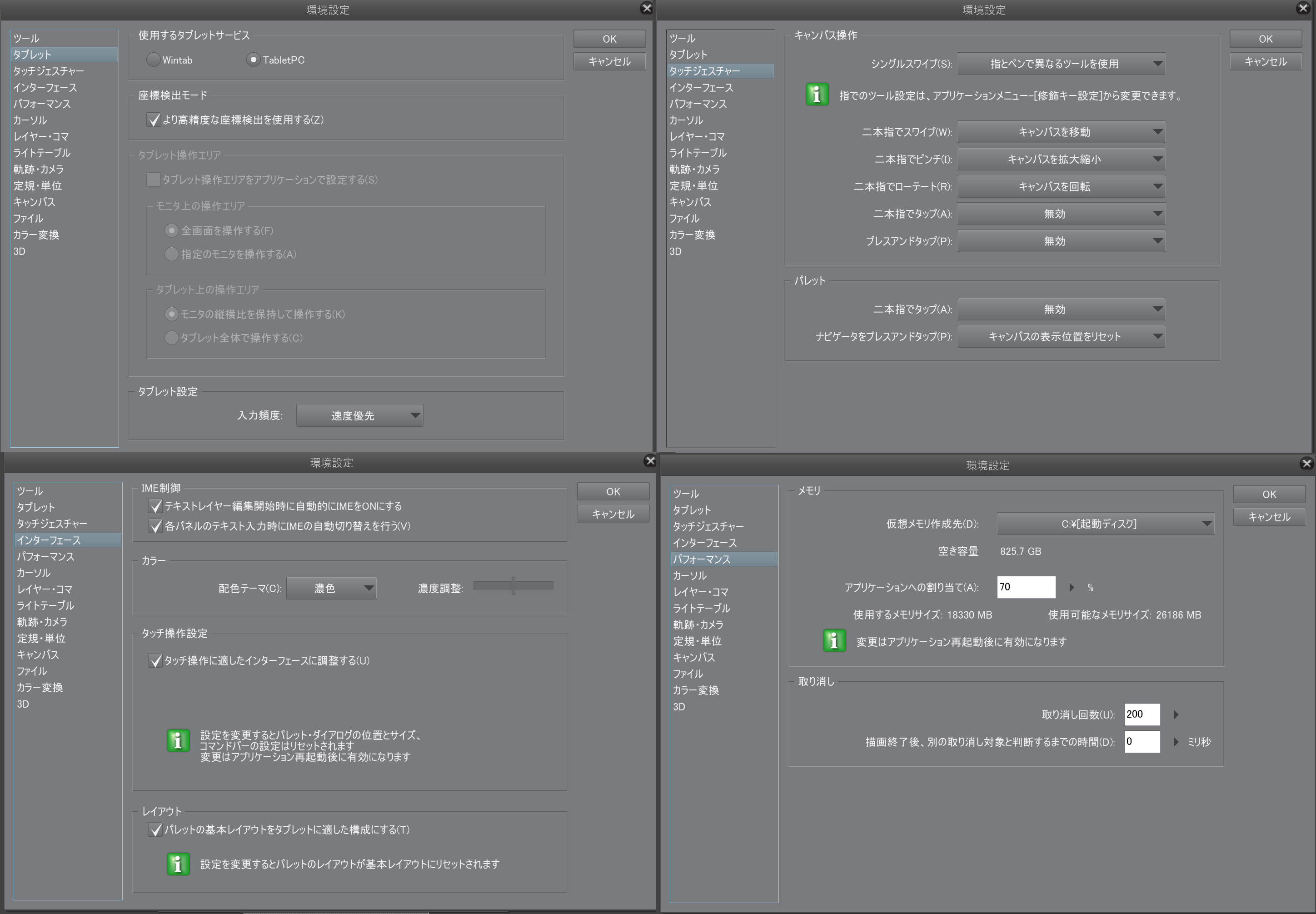 CLIP STUDIO PAINTの[ファイル]メニューにございます[環境設定]を選択し、