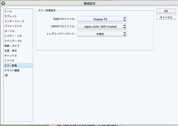 [カラー変換]を選択して表示される画面のスクリーンショットを撮影し、