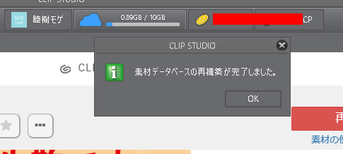 処理が完了した際[素材データベースの再構築が完了しました]以外にも
