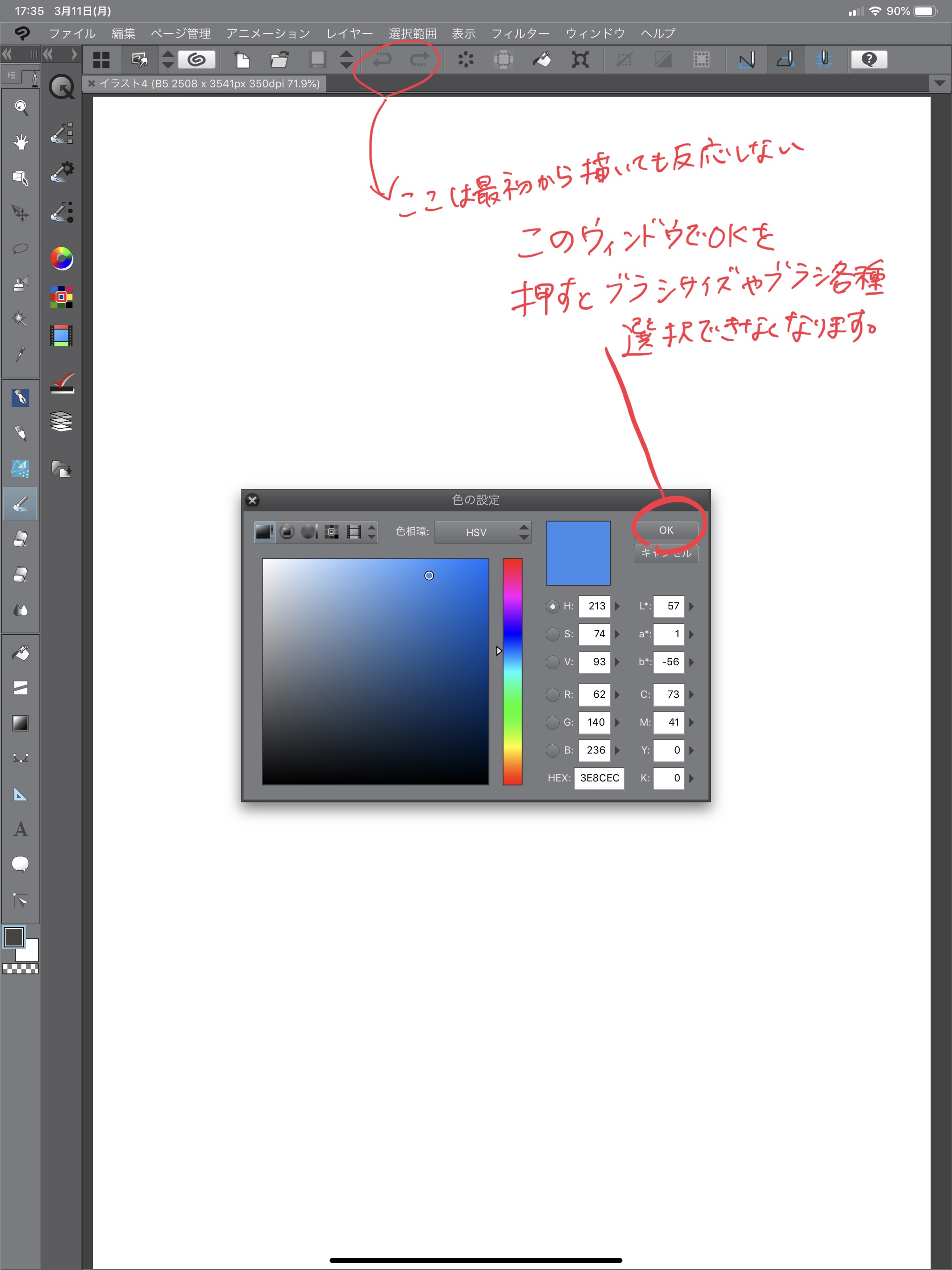 ・現在の状態のCLIP STUDIO PAINTの画面のスクリーンショットを