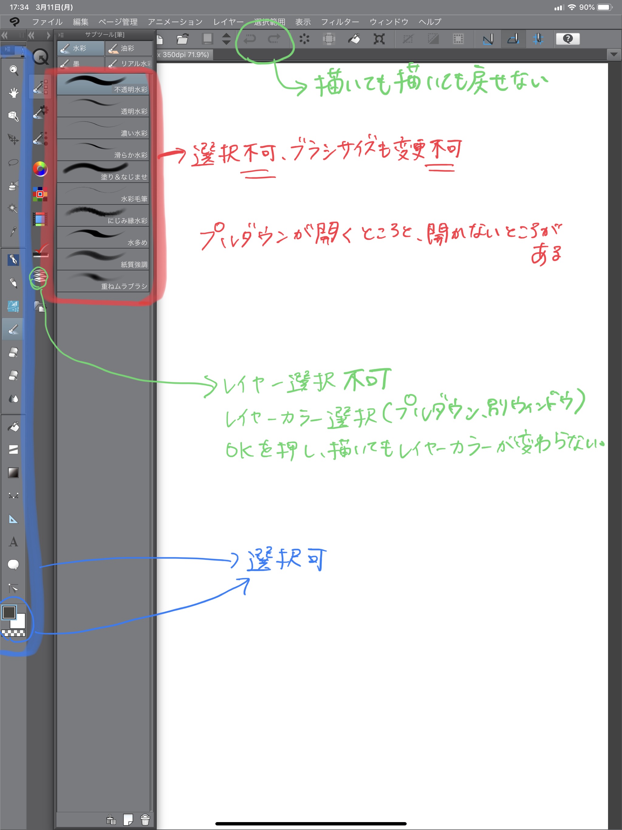 ・[ウィンドウ]メニューの[サブツール詳細]を選択し、表示される