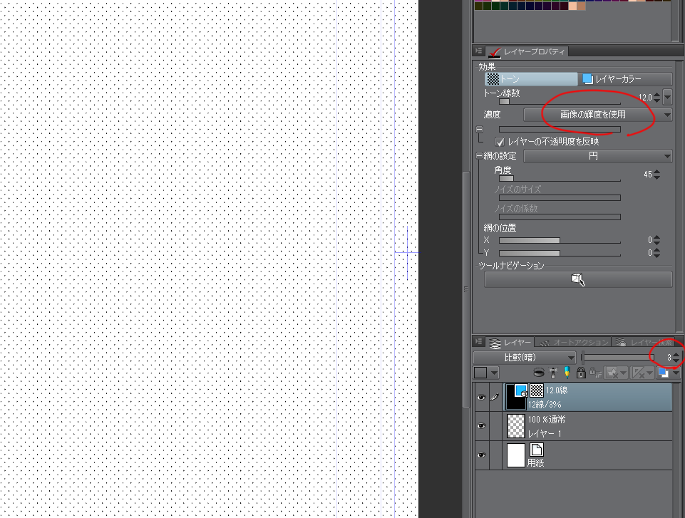 > 素材登録したトーン化したべた塗りレイヤーにつきましてはキャンバスに