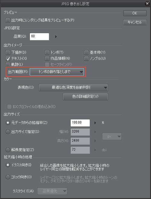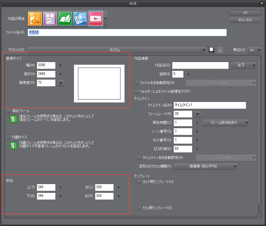 紫色の枠線の外が書き出し時に省かれる部分なので塗りつぶします。