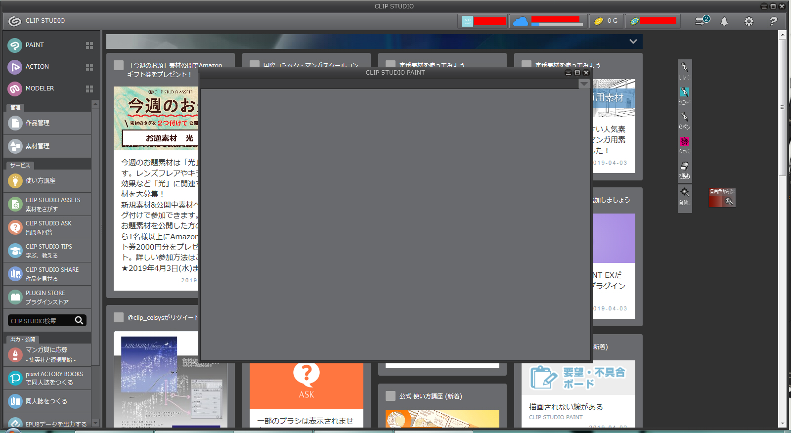 CLIP STUDIO PAINTを起動して頂き、同様の状態であるかご確認