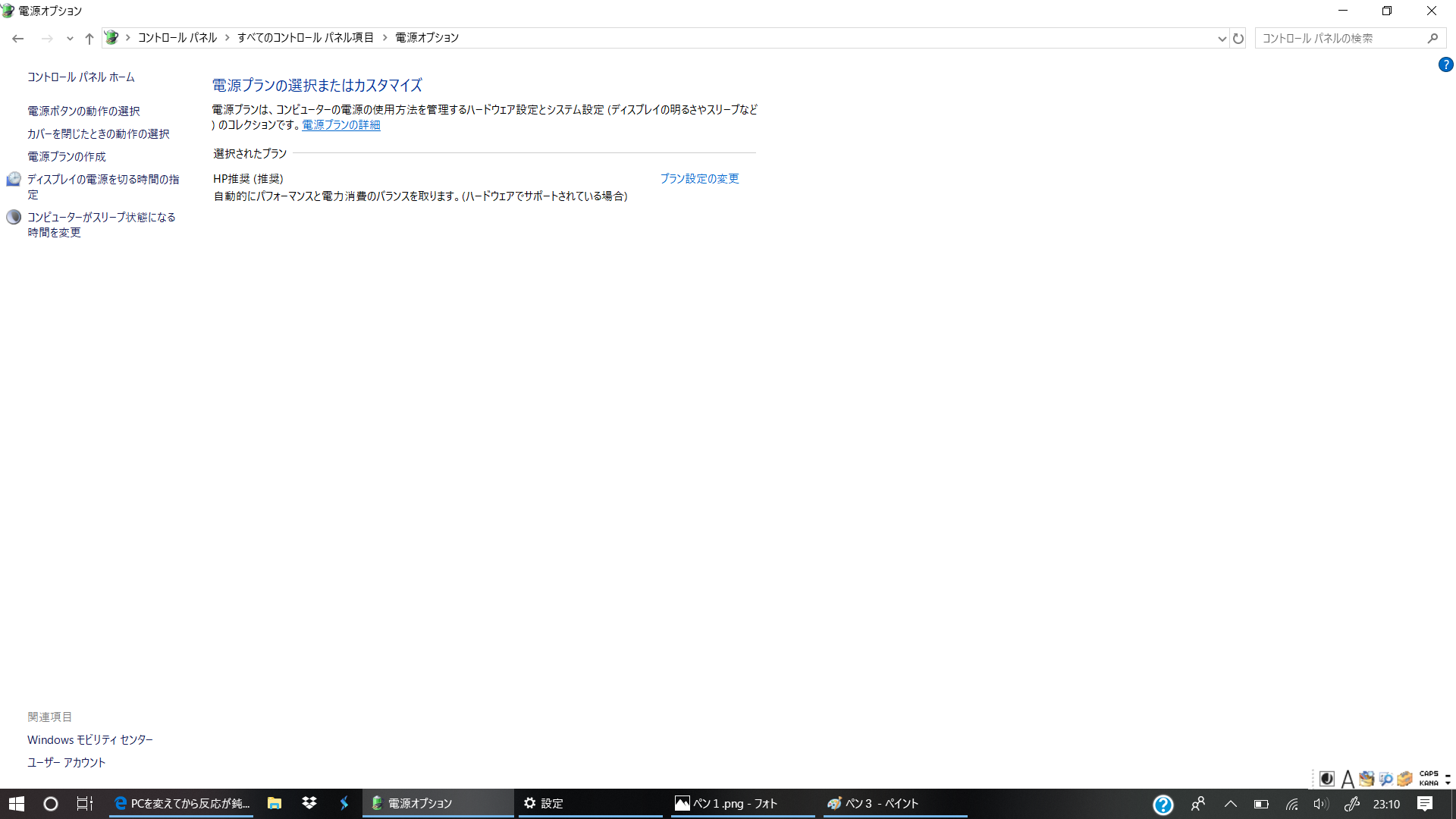 [電源オプション]を選択して表示される画面のスクリーンショットを撮影して、