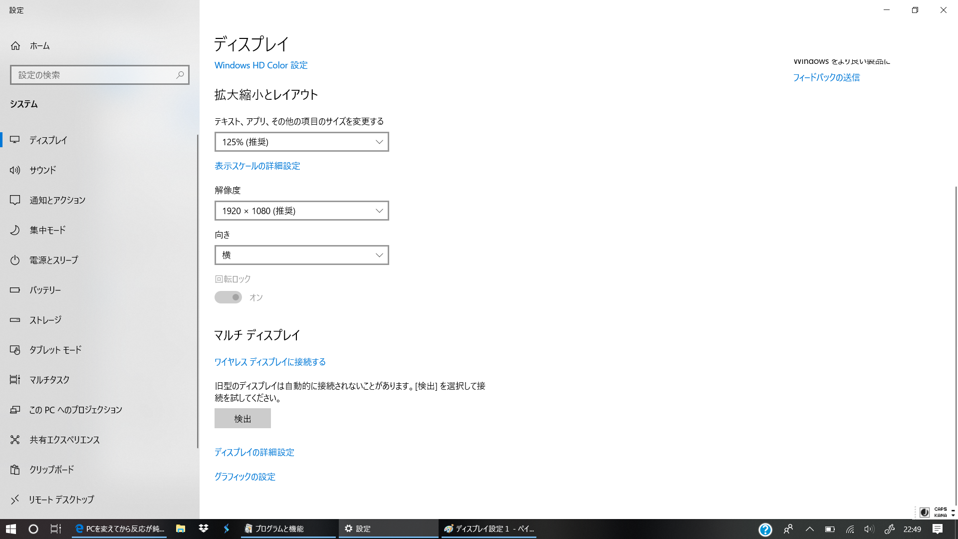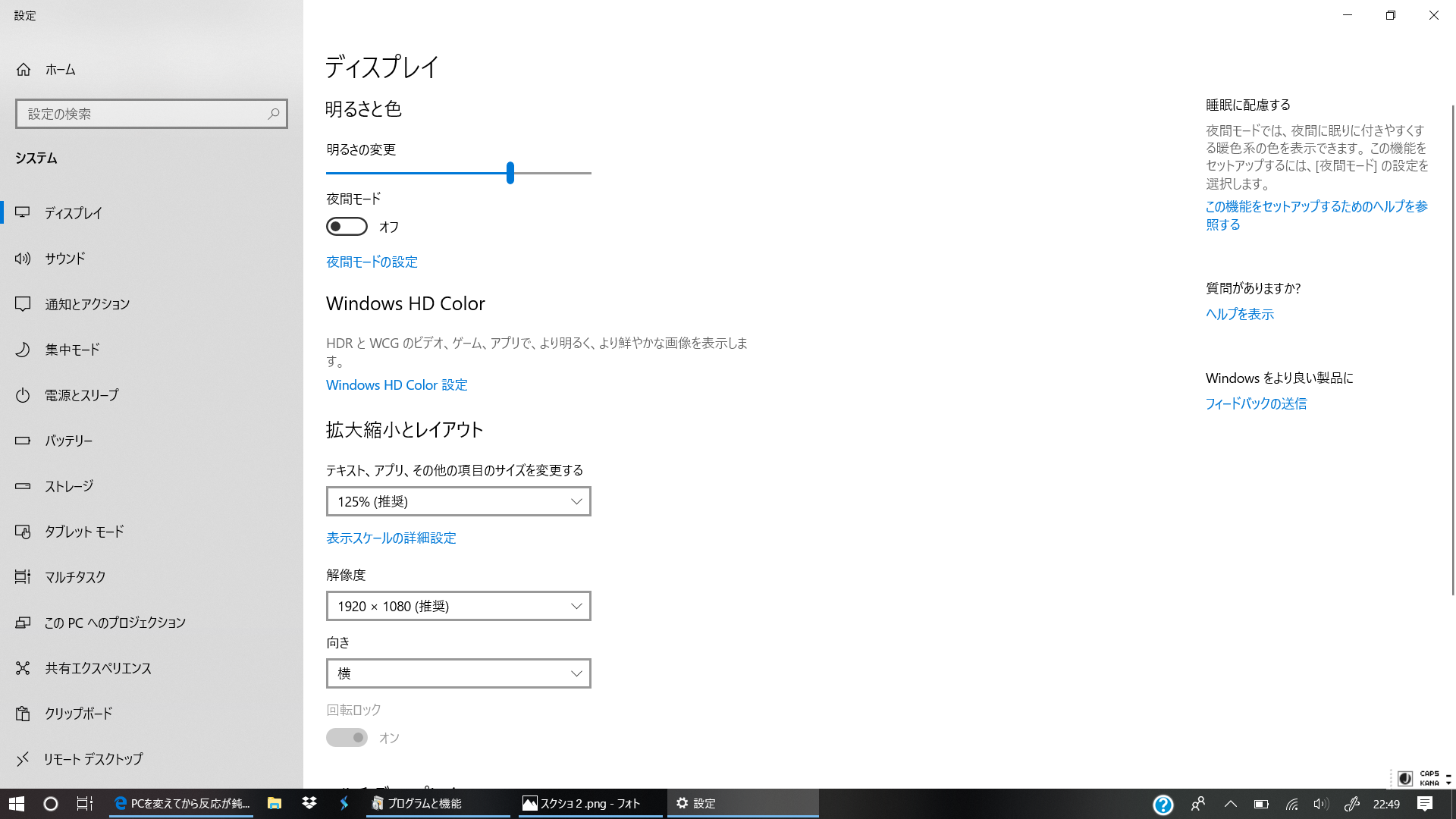 ・[Windowsスタート]→[設定]→[システム]を選択し、表示される画面の