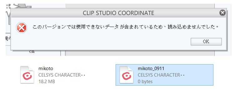 キャラクターを保存するとファイルサイズが0KBになってしまう |