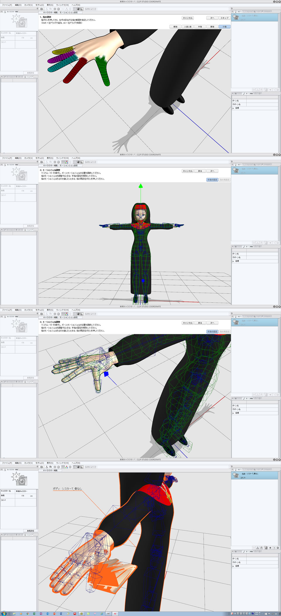 さし絵スタジオで人物合成したモデルなんですが、何度やっても右手の親指がつぶれてしまいます。 私としては素人なりにかなり丁寧にボーンの位置合わせをしているつもりなんですが、 最初左手を合わせても右手がズレたので、Tポーズとらせる際も情報パネルで左右をきっちり 合わせたり、右手の裏表面がおかしかった(これはさし絵スタジオの問題?)のでそれも直し、 全身の位置合わせもとことんトライアルエラーを繰り返しても、どうしても右親指がぐちゃっと。。。 六角大王のライブラリポーズにTポーズがあれば楽なんですが。。。 CLIPモデルも学生服かちょっとした普段着しかないので、 せめてさし絵スタジオ並にバリエーションがあれば、 できたらSFとかファンタジー系の服装でもあればいいのになぁ。。。 最初、ボーン入りの六角モデルをcoordinateに入れてみたら、指先は動かないけどicloneへ持って行けたので、 がんばって指も動くようにしたかっのですが、表情のモーフィングもできないし、ここまでが限界でしょうか。。。 今のところやむなく六角大王でアニメーションしたものを背景ムービーとクロマキーしてみたりしてるんですが、 やっぱり本格3dソフト買って使いこなせる人じゃないと3dムービーは難しいですかなぁ。。。 ![]() ------------------------------------------------------------ ■バージョン: ※[ヘルプ]メニュー→[バージョン情報]で確認できます。 ■OS Windows XP( ) Windows Vista( ) Windows 7 ( ) Windows 8( ) Windows 8.1( ) Windows 10( ) その他( ) MacOS X 10.6( ) MacOS X 10.7 ( ) MacOS X 10.8( ) MacOS X 10.9( ) MacOS X 10.10( ) MacOS X 10.11( ) その他( ) ------------------------------------------------------------ |