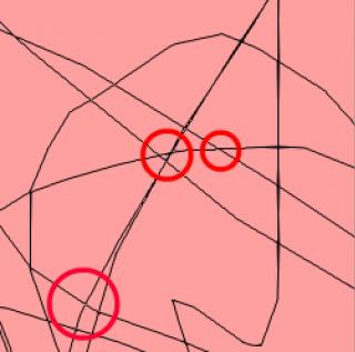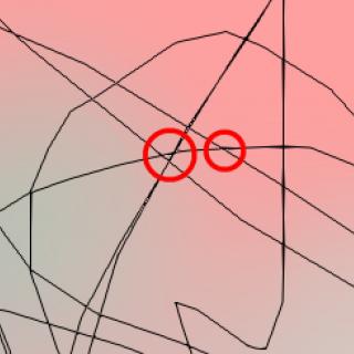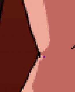 これらを結合して、スムージングをかけると、赤丸で囲んだ場所にまったく関係の無い色の1ピクセルの点が発生