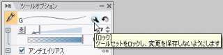 例えば、ブラシサイズや手ブレ補正などがある[ツールセット]パレット(または、[ツールオプション]パレット)であれば、ロックがかかっている可能性があります。