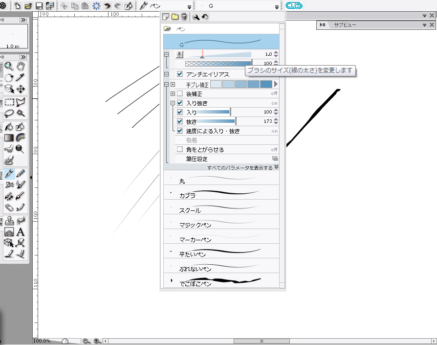 ペンツールの設定 |