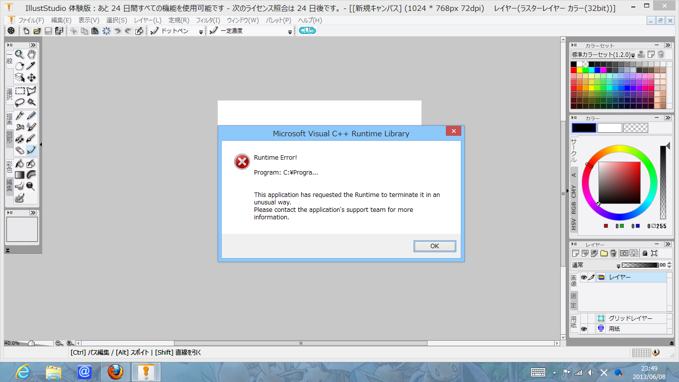 4.IllustStudio 1.0が起動しますので、事象に改善が見られるか