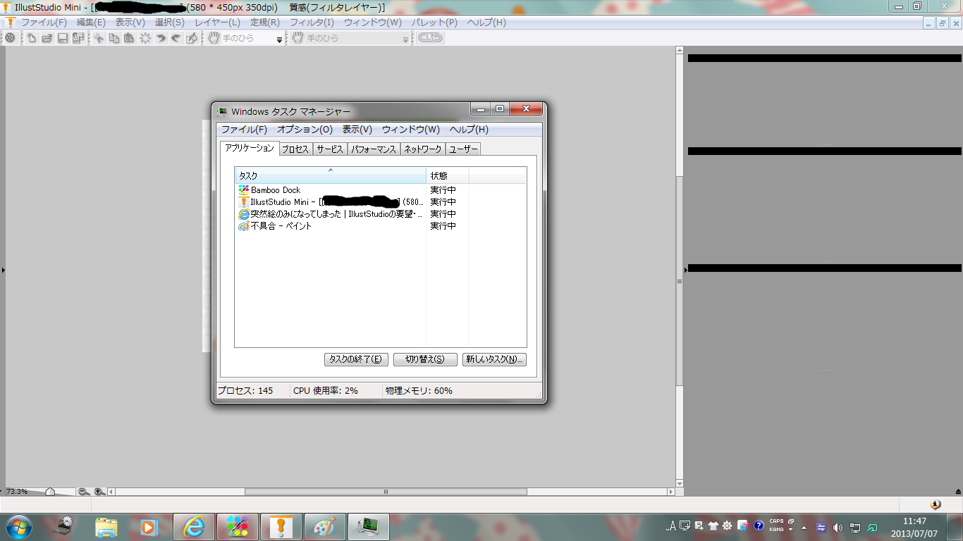 撮って頂いた後にタスクマネージャでIllustStudioを終了させ