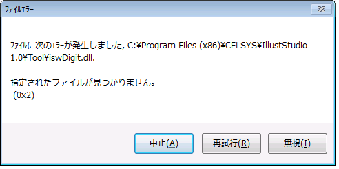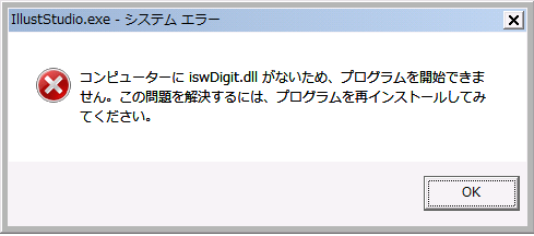 IllustStudioの関連フォルダに何かしらの問題がある可能性があります。