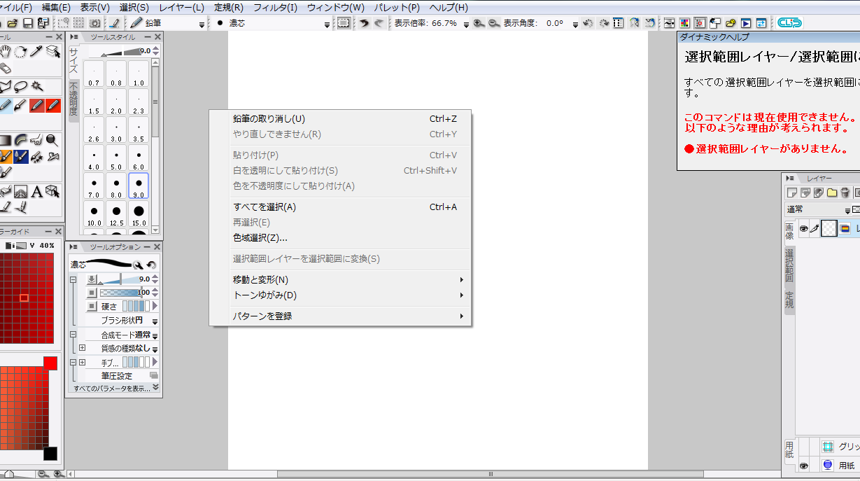 [コンテキストメニュー]以外の[色を取得][編集中レイヤーの色を取得]が選択