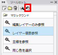 [マジックワンド]ツールを選択していただき、[ツールセット]パレット