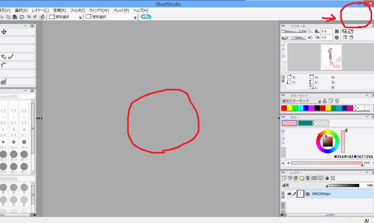 イラストスタジオを使って絵を描いていたのですが イラストのデータが重かったからだと思うのですが、 PCが固まってしまいました。 PCはwindowsです プログラムを終了するというウィンドウがでたので、クリックした後 再びイラストスタジオを起動させたら、 ソフト自体の起動はできたものの、 絵が描けなくなっていました ![]() 右上にあったはずの、イラストを閉じたりする_ □×がなくなってしまい イラストは開いてあるはずなのに、灰色の部分に表示されなくなってしまいました ナビゲータは起動しているようです その後、パソコンを再起動、シャットダウンなど試しましたが 直りませんでした パッケージ版を購入して使っていましたが、 シリアルナンバーの描かれたCD-ROMとCDケースなら手元にあります 再インストールした方がいいでしょうか? なんとかしてもう一度絵が描けるようになってほしいのですが・・・ --------------------------------------------------------- ■IllustStudio IllustStudio( ○ ) IllustStudioMini( ) バージョン: ※[ヘルプ]メニュー→[バージョン情報]で確認できます。 ■OS Windows XP( ) Windows Vista( ) Windows 7 ( ) Windows 8( ) Windows 8.1( ) その他( ) --------------------------------------------------------- |
