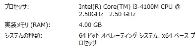 ・こちらのページをご覧いただき、「システムの種類」「CPU」「メモリ」
