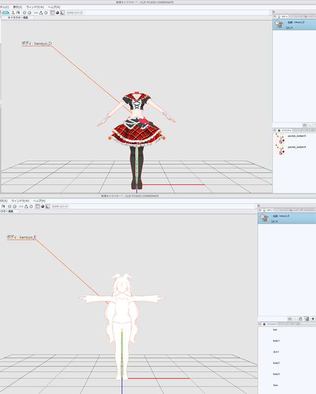 ・CLIP STUDIO COORDINATEに読み込まれた3Dモデルの元データとテクスチャファイル