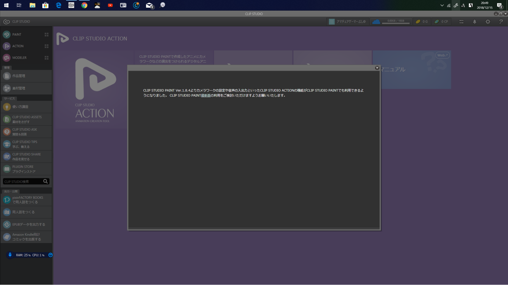 体験版。購入画面を押してもこの調子ですです?![]() ------------------------------------------------------------ ■バージョン: ※Windowsは、[ヘルプ]メニュー → [バージョン情報]で確認できます。 ※MacOSXは、[CLIP STUDIO ACTION]メニュー → [バージョン情報]で確認できます。 ■OS Windows XP( ) Windows Vista( ) Windows 7 ( ) Windows 8( ) Windows 8.1( ) Windows 10( 使用 ) MacOS X 10.6( ) MacOS X 10.7( ) MacOS X 10.8( ) MacOS X 10.9( ) MacOS X 10.10( ) MacOS X 10.11( ) macOS 10.12( ) macOS 10.13( ) macOS 10.14( ) その他( ) ------------------------------------------------------------ |