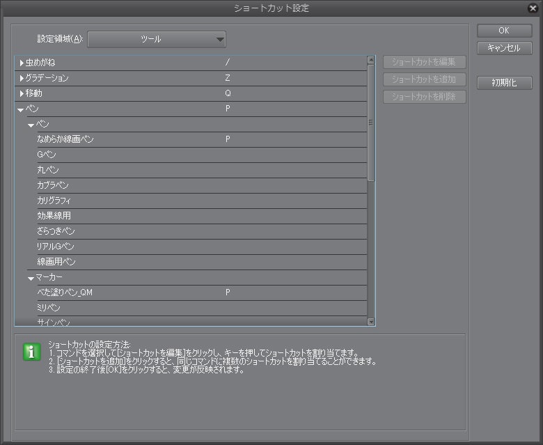 Windows7→Windows10のPCに「CELSYS」フォルダをコピーし、素材はすべて移行することができたのですが、ショートカットキーの設定が反映されていませんでした。 再度登録しなければいけないのでしょうか? ------------------------------------------------------------ ■バージョン: ※Windows/MacOSXは、右上の[?]アイコンをクリック後に[バージョン情報]で確認できます。 ※iPadは、PAINTの[CLIP STUDIO PAINT]アイコンをクリック後に[バージョン情報]で確認できます。 ■OS Windows 7 ( ) Windows 8( ) Windows 8.1( ) Windows 10( 〇 ) MacOS X 10.10( ) MacOS X 10.11( ) macOS 10.12( ) macOS 10.13( ) macOS 10.14( ) iOS 11( ) iOS 12( ) その他( ) ------------------------------------------------------------ |