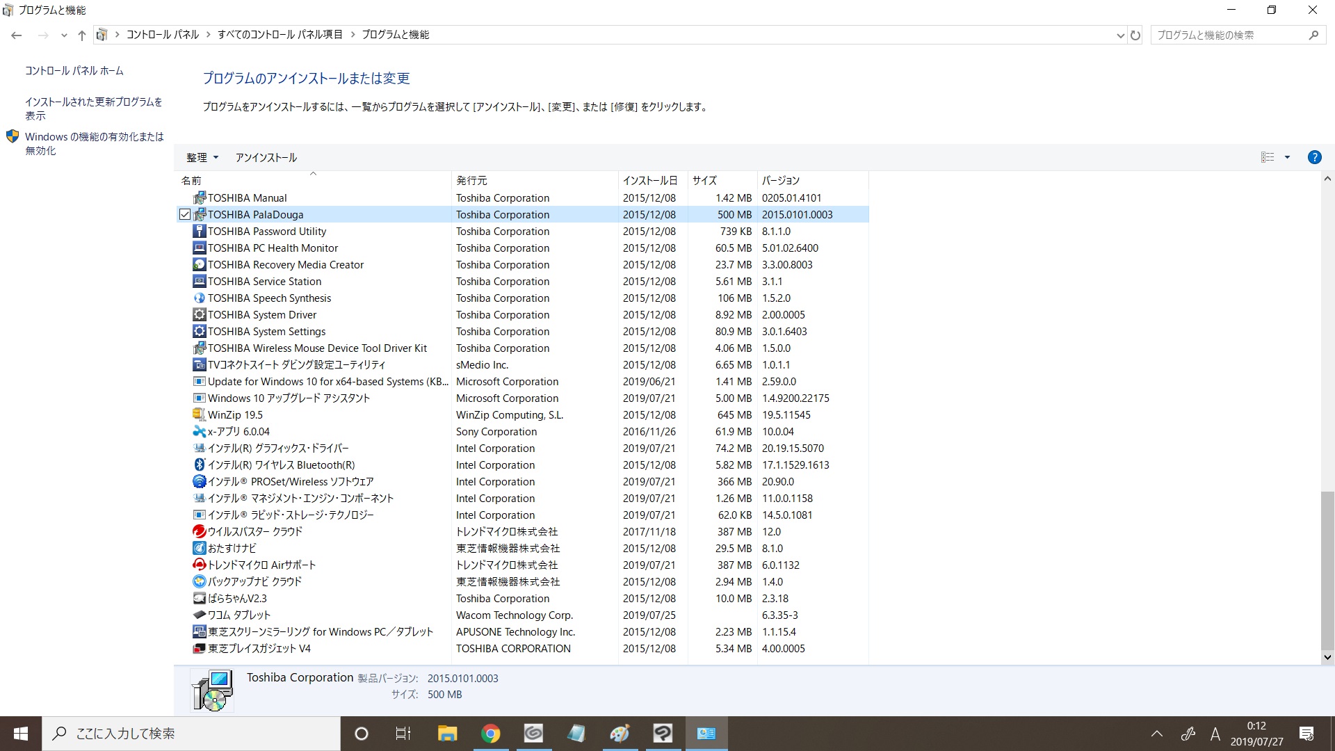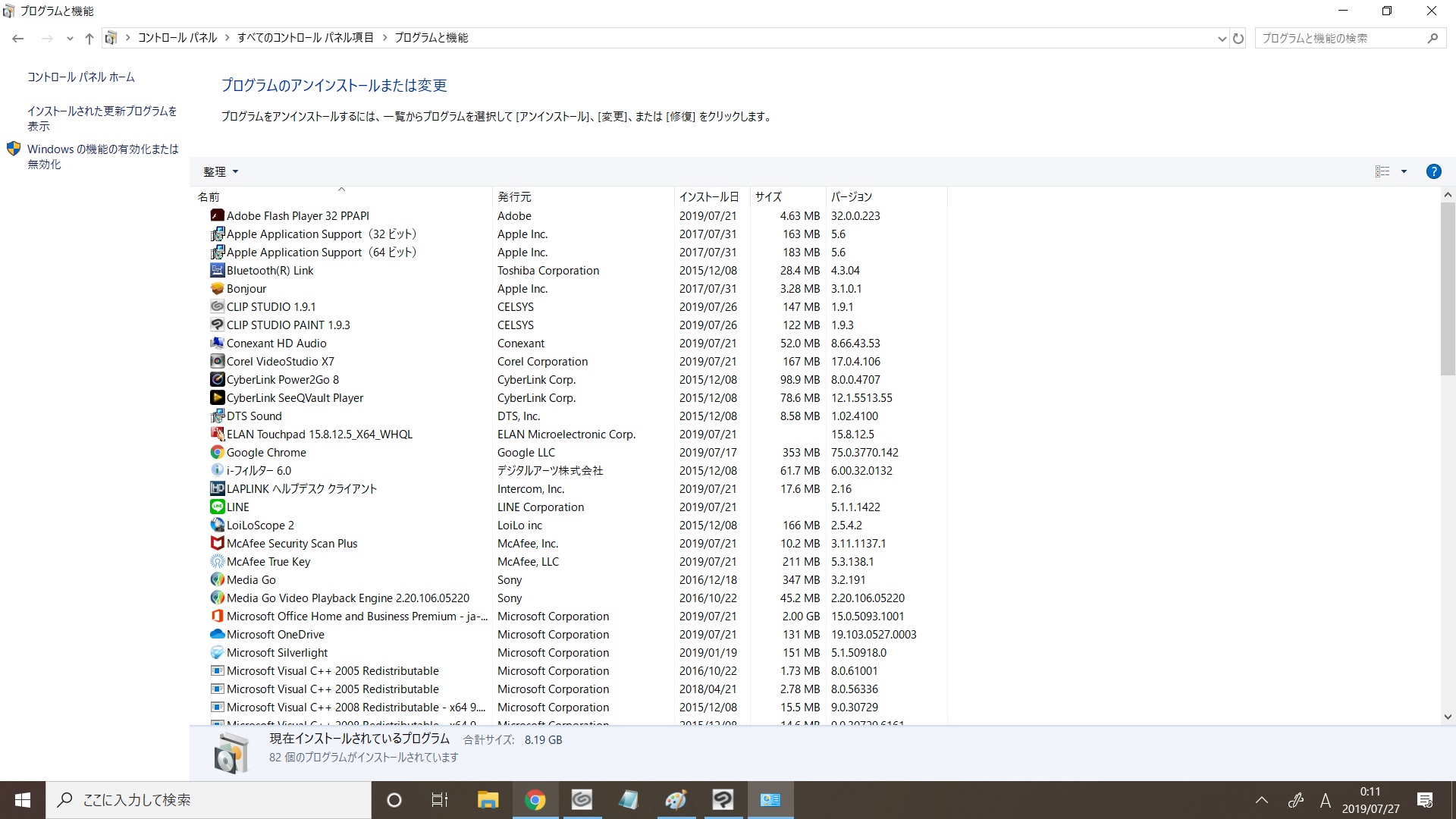 (プログラムと機能)]を選択して表示される画面のすべての項目が