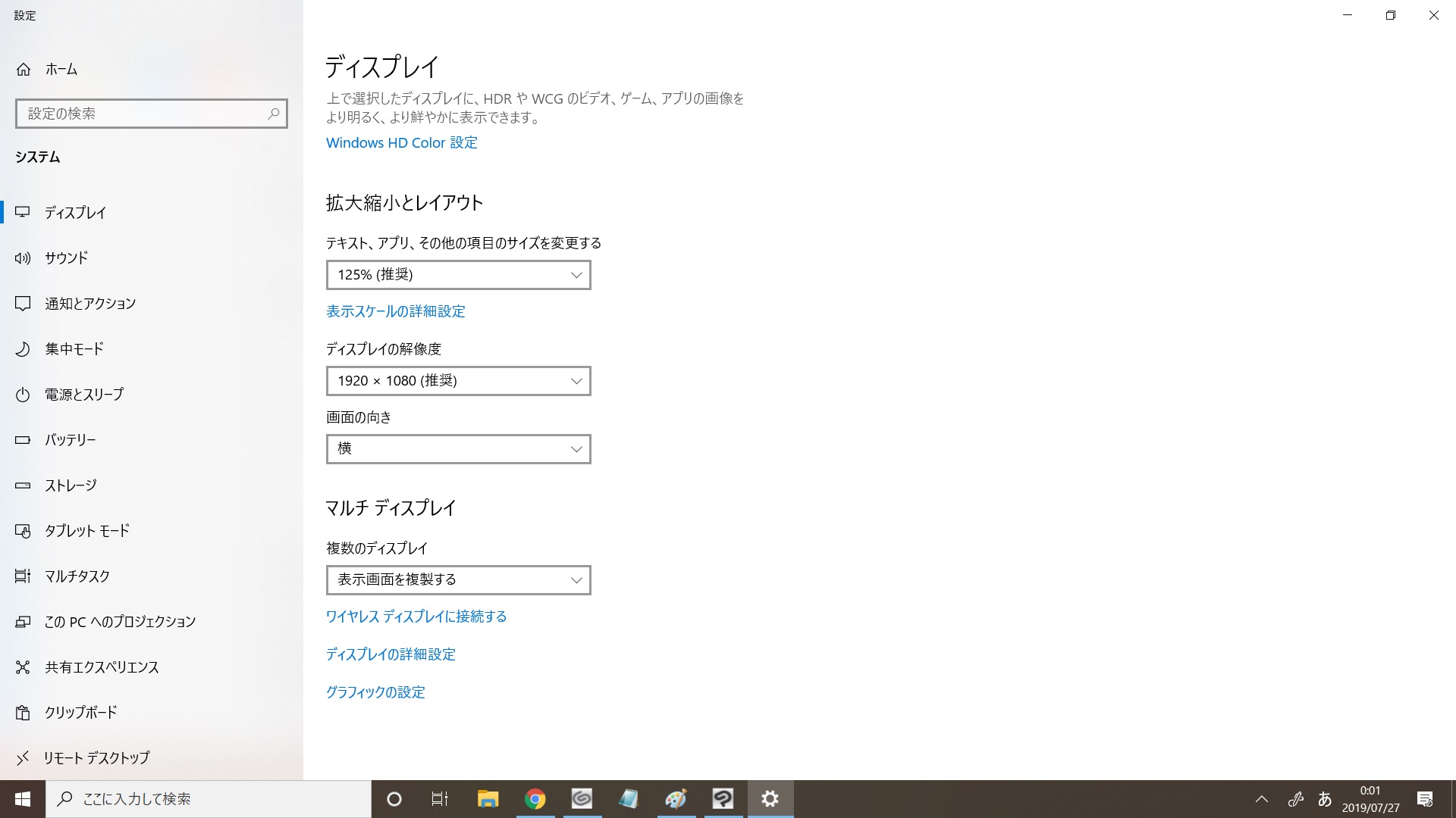 ・[Windowsスタート]→[設定]→[システム]を選択し、表示される画面の