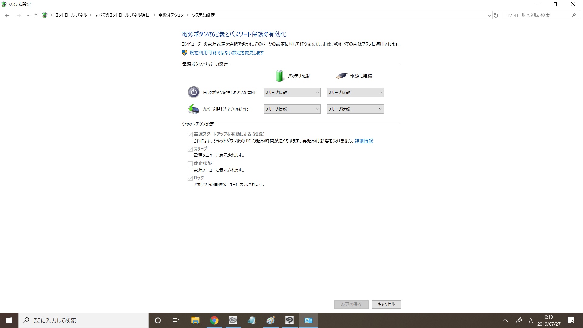 また、その画面左側で[電源ボタンの動作の選択]をクリックし、表示される画面の