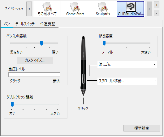 表示される画面左側で[タブレット]を選択した状態の画面のスクリーンショット