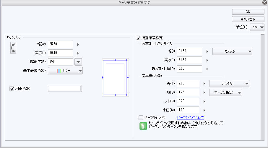今回は内枠を変更したいのですが、キャンバスや製本サイズを変更しても反映されないページは同じでした。