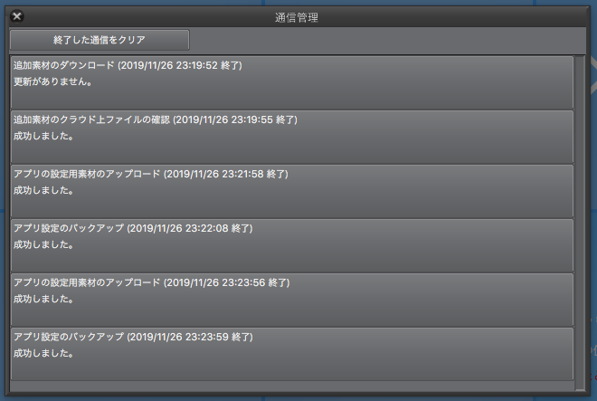pcにてアプリ設定のバックアップを初めて行ったところ、下記のようにエラーが出ました。 エラーが発生したデータが存在します 詳細を確認すると → 「???:データの読み込みに失敗しました」 「???:データの読み込みに失敗しました」 と出ます。 調べても同様の不具合等が見つけられなかったので質問いたします。 対処法をお教えいただけますでしょうか。 ------------------------------------------------------------ ■バージョン: 1.8.4 ※Windows/MacOSXは、右上の[?]アイコンをクリック後に[バージョン情報]で確認できます。 ※iPadは、PAINTの[CLIP STUDIO PAINT]アイコンをクリック後に[バージョン情報]で確認できます。 ■OS Windows 7 ( ) Windows 8( ) Windows 8.1( ) Windows 10( ) MacOS X 10.10( ) MacOS X 10.11( ) macOS 10.12( ○) macOS 10.13( ) macOS 10.14( ) macOS 10.15( ) iOS 11( ) iOS 12( ) iPadOS 13( ) その他( ) ------------------------------------------------------------ |