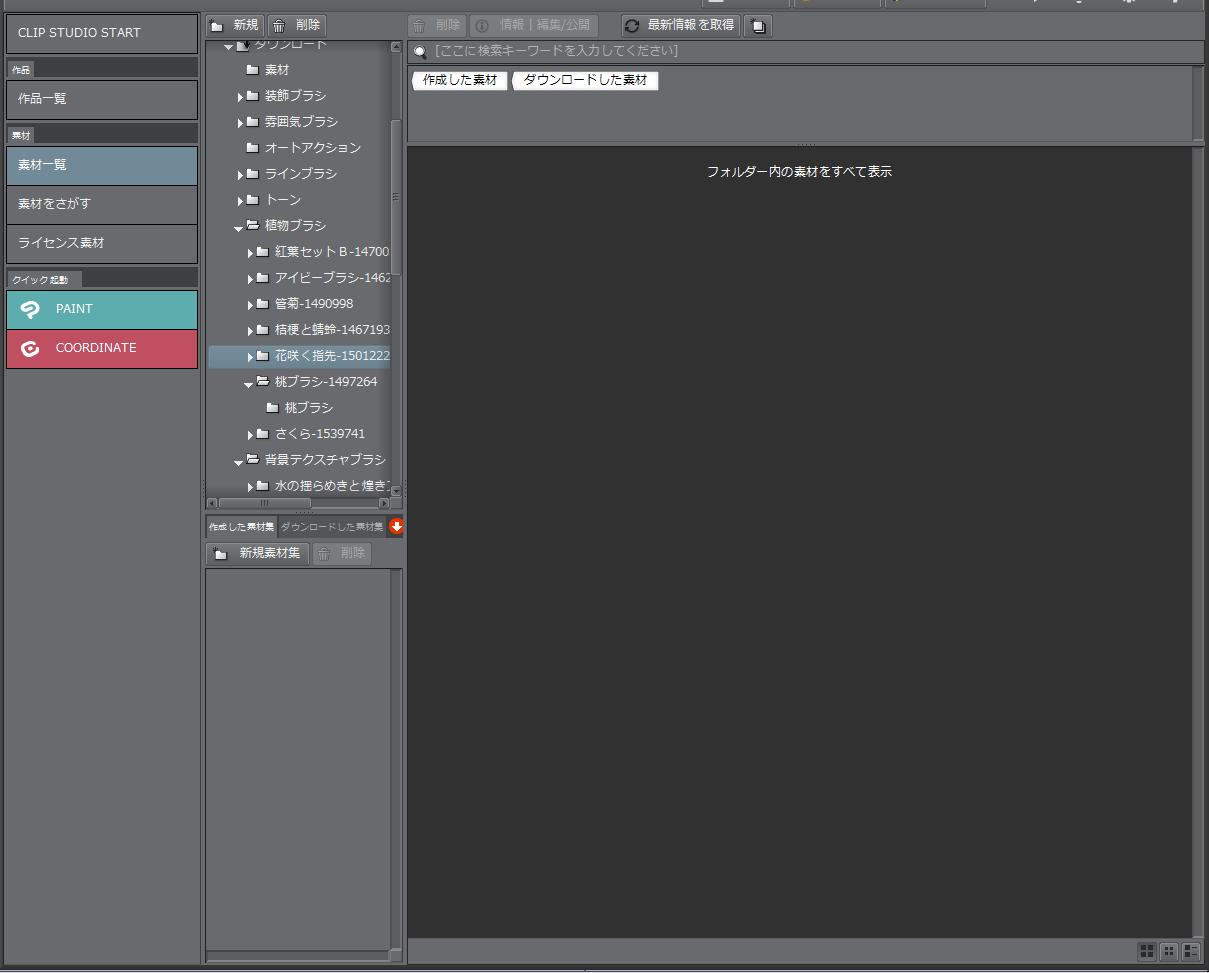 4.CLIP STUDIO PAINTを起動し、素材パレットをご確認ください。