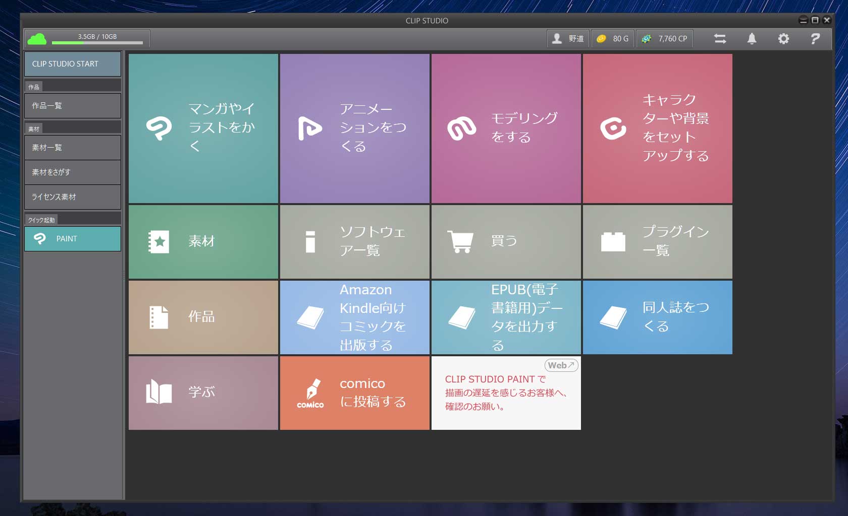 主に居間や出先でcintiq companion、自室でメインPC(デスクトップ)で描くという使い方をしています。 今回初めてクラウドを使ってみました。